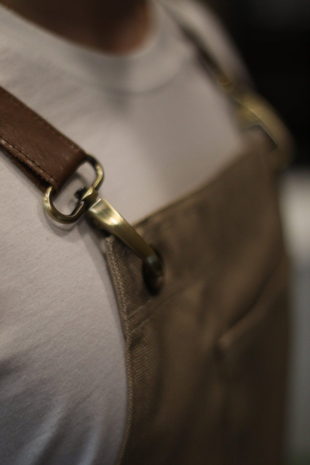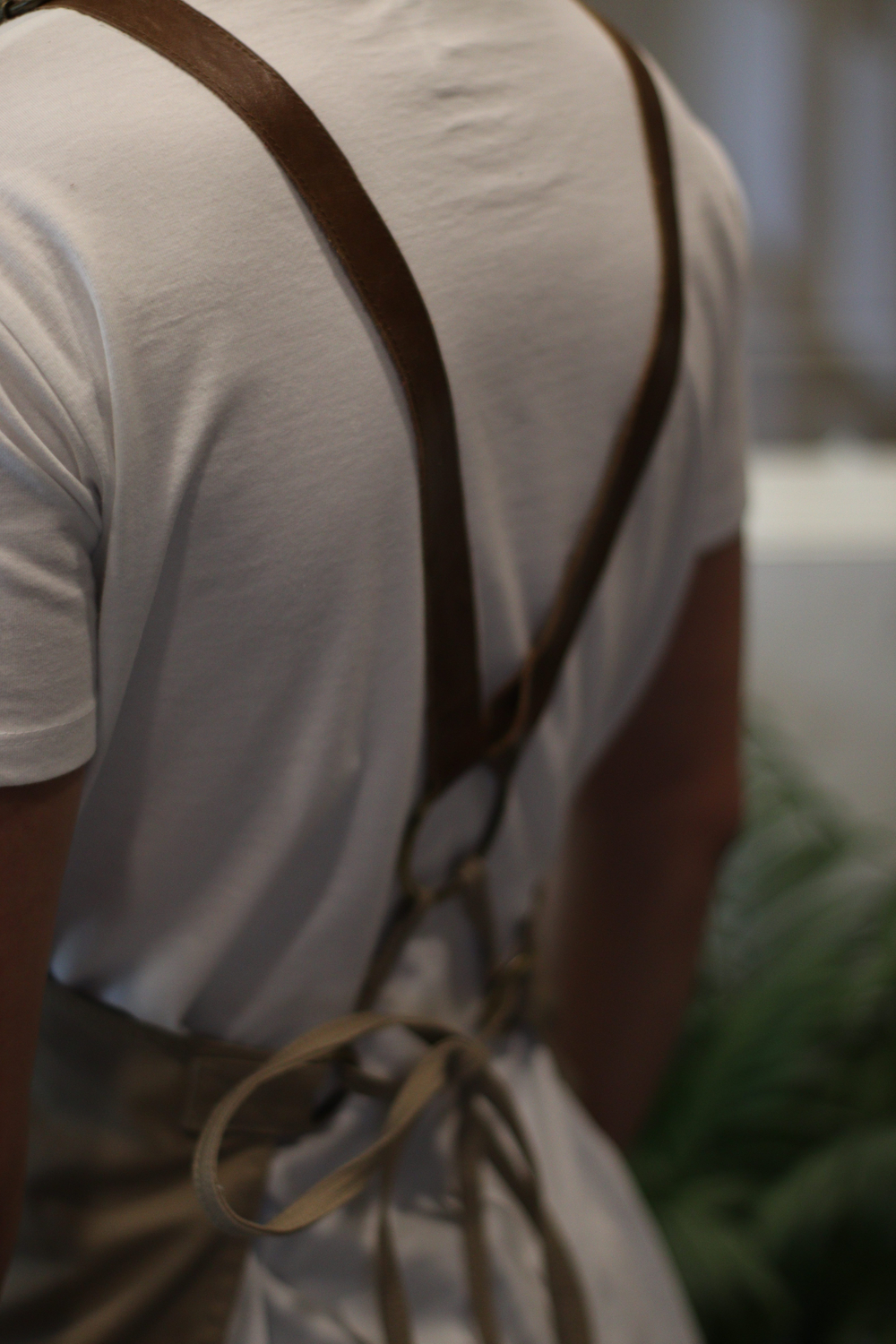 Δερμάτινες τιράντες που καταλήγουν πίσω χιαστή σε κρίκο και φακαρόλα για δέσιμο στη μέση.