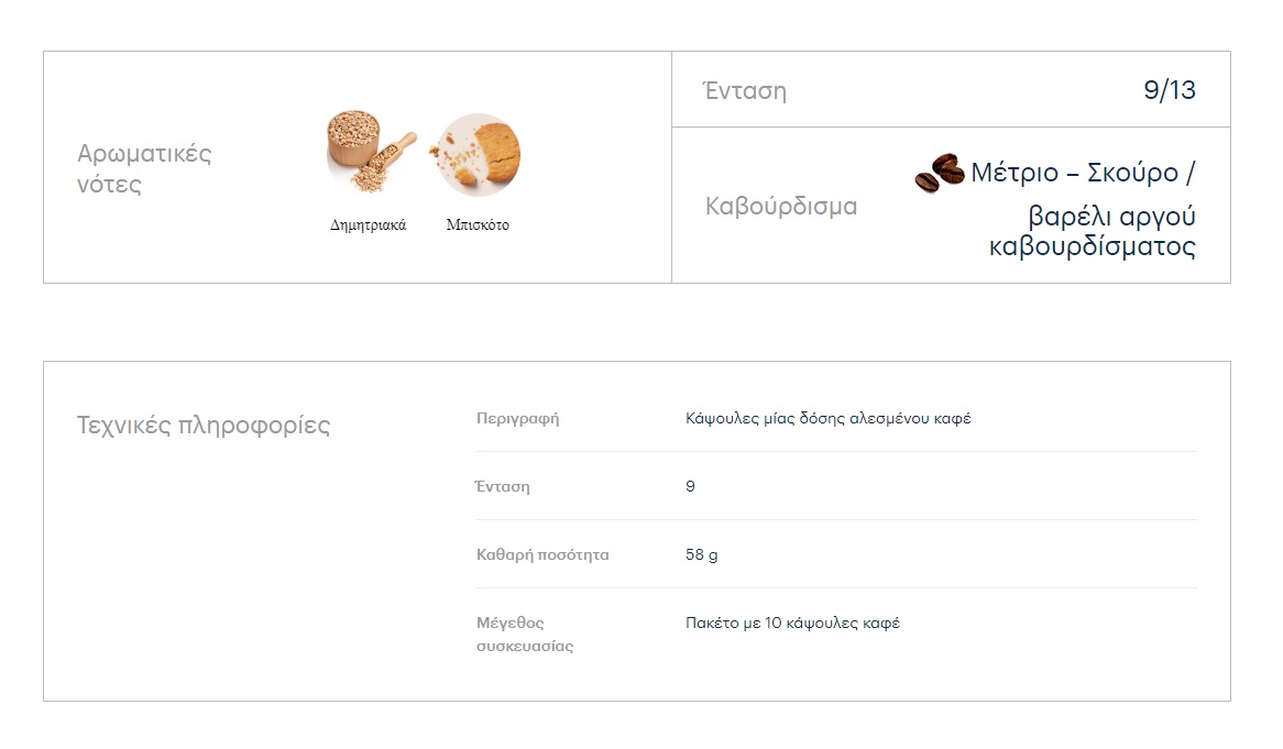 Κάθε πακέτο περιέχει 10 κάψουλες καφέ